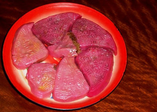 It's basically some pink dough wrapped around glutinous rice, which is normally eaten steamed.